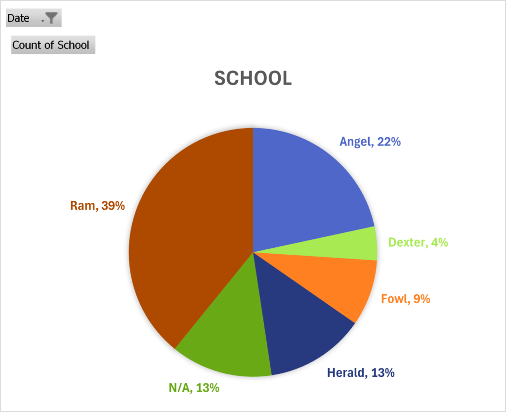 While Ram and Angel remain the most popular schools, we see a big comeback for Herald who was poised to become the least popular school. While Fowl play was decreased by 6 percent, there was still a good amount of representation. And welcome back Dexter, who was notably absent from the Summer Invitational!